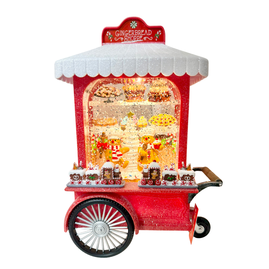 Illuminate your holiday decor with the Gingerbread Shoppe Christmas Globe. Standing 10.75 inches tall, this lighted swirl cart captures the charm of a festive bakery scene, adding warmth and elegance to any room. Its delicate illumination highlights intricate details, creating a sophisticated centerpiece that evokes the nostalgic spirit of the season. Perfect for enhancing your holiday ambiance with timeless style.