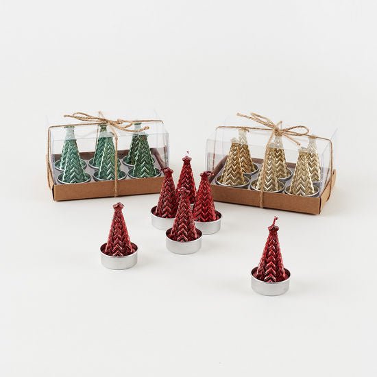 Unlock that Christmas feeling any time of year with these Metallic Tree Tea Lights! These festive tea lights aren't your regular candles: they're shaped like a little Christmas tree! Choose from gold, red, or green and get your box of 6 to light up any occasion - no waiting for December 25th!