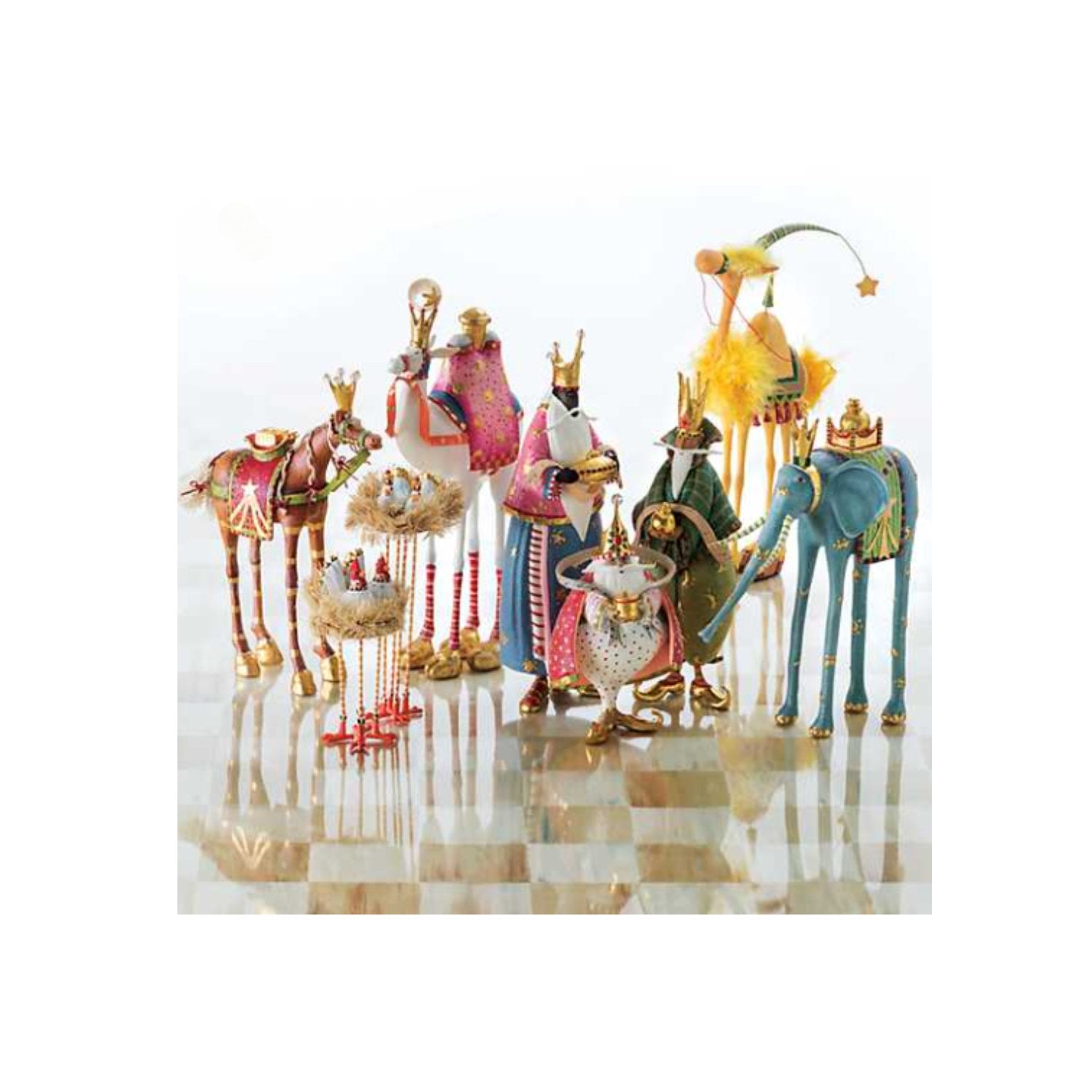 MacKenzie Childs - Patience Brewster Nativity Collection Celebrate the spirit of Christmas with the Nativity collection from Patience Brewster by MacKenzie-Childs. An ever-expanding group of handmade and hand-painted figures tells the story of the first Christmas in a colorful and captivating way. The Patience Brewster Nativity Chicken Dove Figures are quite a grouping of whimsical birds of a feather.